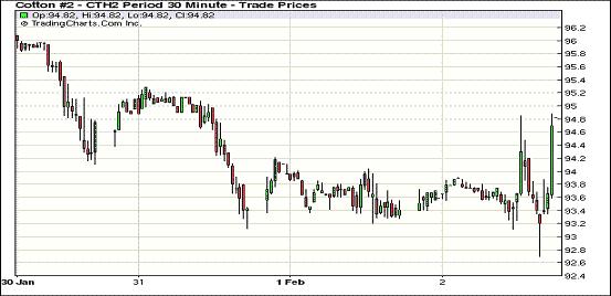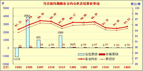 2月2日,紐約期棉在買(mǎi)盤(pán)支持下延續(xù)前一日漲勢(shì),主力1203月合約結(jié)算價(jià)94.21美分/磅,漲82點(diǎn),1205月合約結(jié)算價(jià)95.49美分/磅,漲70點(diǎn),其他遠(yuǎn)期合約漲幅50-85點(diǎn)不等。當(dāng)日總持倉(cāng)量為178051張,為本年度最高,也是2011年4月18日以來(lái)最高點(diǎn)。當(dāng)日市場(chǎng)早盤(pán)在93.6-93.9美分/磅之間窄幅震蕩;午盤(pán)后波動(dòng)較大,交易尾段期棉在買(mǎi)盤(pán)支撐下,主力3月合約超過(guò)前一日高點(diǎn),最高至94.88美分/磅,5月合約最高至95.49美分/磅;盤(pán)終各合約普遍告漲并呈現(xiàn)近弱遠(yuǎn)強(qiáng)態(tài)勢(shì)。當(dāng)日外部大豆與玉米期貨收漲,小麥與原有期貨告跌。據(jù)美國(guó)農(nóng)業(yè)部(USDA),1.20-1.26一周美國(guó)凈簽約出口本年度陸地棉負(fù)的37195噸,裝運(yùn)83008噸(較前一周增83%,較近四周平均值增97%,為2011年4月份以來(lái)最高)。周五美國(guó)將公布關(guān)鍵的就業(yè)數(shù)據(jù),對(duì)市場(chǎng)有較大影響。此外希臘債務(wù)危機(jī)即將到期,其與私人債權(quán)人債務(wù)談判的不確定性令市場(chǎng)感到不安。