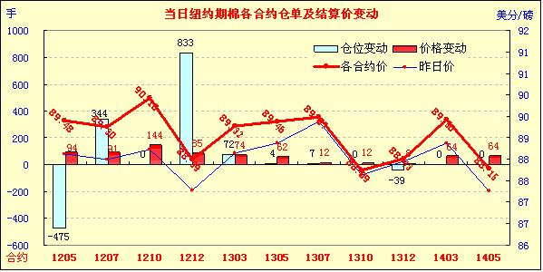 在復(fù)活節(jié)假期恢復(fù)交易后,9日紐約期棉因?qū)SDA(美國(guó)農(nóng)業(yè)部)即將發(fā)布的供需預(yù)測(cè)報(bào)告預(yù)期利好而止跌收漲,近期5月合約結(jié)算價(jià)89.48美分/磅,漲94點(diǎn),1212月合約88.39美分,漲85點(diǎn)。市場(chǎng)平穩(wěn)開(kāi)盤(pán),交易中期在89-89.5美分一線平淡交易,交易后期有指數(shù)基金買(mǎi)盤(pán)進(jìn)入,刺激市場(chǎng)走高,5月合約突破90美分,漲幅過(guò)百,交易尾段回吐少量漲幅,最終收漲90余點(diǎn)。分析師指出,4月10日USDA將發(fā)布全球供需預(yù)測(cè)報(bào)告,預(yù)計(jì)美棉2012/13年度產(chǎn)量有可能調(diào)低,出口量有調(diào)增可能,對(duì)期棉市場(chǎng)有利。日前,印度紡織部建議能對(duì)棉花出口加征10000盧比/噸(約合195美元/噸)的關(guān)稅,限制出口保障國(guó)內(nèi)企業(yè)用棉需求,而同時(shí),印度貿(mào)易部兼紡織部部長(zhǎng)夏馬指出,在相關(guān)部門(mén)對(duì)今年1月份裝運(yùn)出去的棉花監(jiān)測(cè)完是否在其他國(guó)家囤積之前,印度不會(huì)解除對(duì)棉花出口的禁令。
