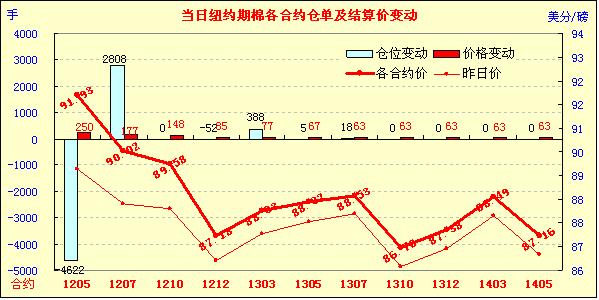 4月18日,投機(jī)買盤給予支持促紐約期棉市場(chǎng)持續(xù)走高,近期5月合約結(jié)算價(jià)91.93美分/磅,漲250點(diǎn),1207月合約90.02美分,漲177點(diǎn),1212月合約87.18美分,漲85點(diǎn)。當(dāng)日市場(chǎng)全面高開,盤中穩(wěn)定波動(dòng),5/7月合約轉(zhuǎn)倉以及7/12月合約轉(zhuǎn)倉活躍,印度棉花咨詢委員會(huì)昨日公布了棉花產(chǎn)消存報(bào)告,報(bào)告稱:印度棉花期初庫存391萬包(66.5萬噸),產(chǎn)量3470萬包(589.9萬噸),消費(fèi)2520萬包(428.4萬噸),進(jìn)口60萬包(10.2萬噸),出口1150萬包(195.5萬噸),期末庫存251萬包(42.7萬噸)。根據(jù)上述數(shù)據(jù),預(yù)計(jì)印度政府將不會(huì)再允許新的棉花出口。根據(jù)數(shù)據(jù),預(yù)計(jì)印度政府將不會(huì)再允許新的棉花出口,此消息提振了18日美棉期貨市場(chǎng),交易后期受投機(jī)買盤和空頭平倉支持,市場(chǎng)漲幅擴(kuò)大,最終全面收漲。當(dāng)日市場(chǎng)全面高開,盤中穩(wěn)定波動(dòng),5/7月合約轉(zhuǎn)倉以及7/12月合約轉(zhuǎn)倉活躍,印度棉花咨詢委員會(huì)昨日公布了棉花產(chǎn)消存報(bào)告,根據(jù)數(shù)據(jù),預(yù)計(jì)印度政府將不會(huì)再允許新的棉花出口,此消息提振了18日美棉期貨市場(chǎng),交易后期受投機(jī)買盤和空頭平倉支持,市場(chǎng)漲幅擴(kuò)大,最終全面收漲。