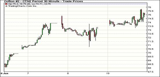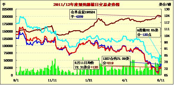 6月11日,紐約期棉市場(chǎng)漲跌互現(xiàn),近期7月合約結(jié)算價(jià)75.09美分/磅,漲219點(diǎn),主力12月合約69.29美分,跌59點(diǎn),7/12月合約價(jià)差達(dá)到580點(diǎn)。當(dāng)日市場(chǎng)隨外部商品市場(chǎng)一并高開(kāi)低走,西班牙為本國(guó)銀行尋求金融援助的消息對(duì)商品市場(chǎng)短暫提振了信心,期棉跟隨美國(guó)股市和商品市場(chǎng)上漲,但交易后期由于援助計(jì)劃細(xì)節(jié)尚未敲定,加上圍繞希臘的擔(dān)憂情緒所引發(fā)的不安,投資者的熱情很快冷卻下來(lái),期棉主力合約最終收跌于70美分以下。投資者期待12日USDA(美國(guó)農(nóng)業(yè)部)將發(fā)布的供需預(yù)測(cè)報(bào)告能帶來(lái)方向指引。
