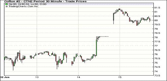紐約期棉美元下跌跳空高開續(xù)漲(6-15)