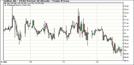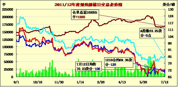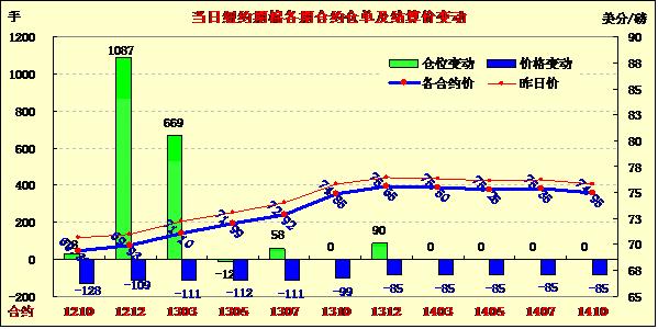 7月12日,因美元走強(qiáng)、美股持續(xù)走弱及美國(guó)主產(chǎn)棉區(qū)旱情得到改善,同時(shí)上周美棉出口銷售不佳,紐約期棉全面收跌。近期10月合約結(jié)算價(jià)69.36美分/磅,跌128點(diǎn);主力12月合約結(jié)算價(jià)69.93美分/磅,跌109點(diǎn);其他遠(yuǎn)期合約也普遍大幅收跌。當(dāng)日市場(chǎng)高開(kāi)低走,主力合約早盤至當(dāng)日最高點(diǎn)71.40美分/磅,后在賣盤打壓下一路下行,盤終自6月28日以來(lái)首次收于70美分之下。當(dāng)日外部谷物及原油市場(chǎng)普遍上揚(yáng)。美國(guó)聯(lián)邦儲(chǔ)備委員會(huì)周三公布的6月份會(huì)議紀(jì)要顯示,官員們并不急于在短期內(nèi)推出新一輪經(jīng)濟(jì)刺激措施。這令投資者期望落空,進(jìn)而導(dǎo)致股市走低。此外,美國(guó)西南棉區(qū)德州及中南棉區(qū)旱情近期降雨使旱情得到改善,美棉銷售情況不佳,這也對(duì)期棉形成打壓。