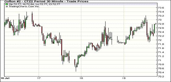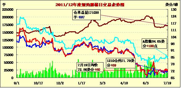 7月19日,受美元走低、美股及外部商品市場普遍走高支持,紐約期棉連續(xù)第二個交易日收漲,近期10月合約結(jié)算價71.79美分/磅,漲69點;主力12月合約結(jié)算價72.63美分/磅,漲70點;其他遠期合約漲幅29-47點不等。當(dāng)日市場對上周美棉出口反應(yīng)平淡,主力12月合約平穩(wěn)開盤,在外圍市場支持下于午盤后上揚至當(dāng)日最高點73.21美分/磅;交易后段雖有所回落但盤終仍中幅收漲。12/3月合約價差縮小至70點,較前一個交易日減23點。美國6月份成屋簽約銷量下滑5.4%,降至八個月來最低水平;上周美國首次申請失業(yè)救濟人數(shù)增至386000人,高于經(jīng)濟學(xué)家平均預(yù)計的365000人。這些數(shù)據(jù)引發(fā)有關(guān)美國聯(lián)邦儲備委員會推出刺激舉措的預(yù)期升溫,美元對其他主要貨幣大多走低,促使股市及商品市場普遍上揚。