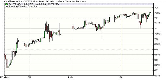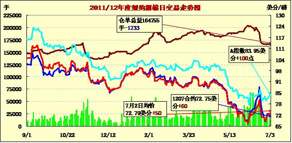 紐約期棉外部市場(chǎng)影響期棉震蕩收漲四連陽(yáng)(7-3)
