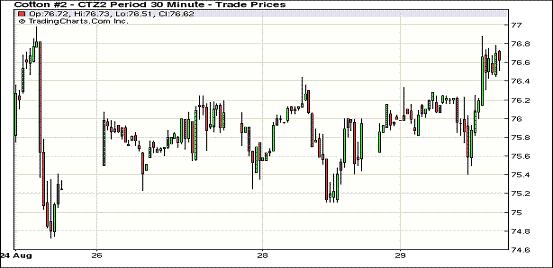 8月29日,因颶風(fēng)“艾薩克”為美國局部棉區(qū)帶來狂風(fēng)暴雨天氣,導(dǎo)致新花質(zhì)量及單產(chǎn)受損,且推遲新花采摘,同時外部谷物市場上揚對期棉形成支持,紐約期棉全面反彈上揚,近期10月合約收于75.83美分/磅,漲104點;主力12月合約結(jié)算價76.65美分/磅,漲103點。當(dāng)日市場早盤較為平穩(wěn),主力合約圍繞76美分/磅上下震蕩,當(dāng)日最高至76.44美分/磅;午盤前后獲利平倉盤入市打壓市場走低,但颶風(fēng)影響美棉單產(chǎn)及質(zhì)量的消息促市場快速反彈,主力合約交易后半段在76.6美分左右震蕩,盤終收漲百余點。當(dāng)日外部谷物市場走高,原油市場走低。美國國家颶風(fēng)中心昨天日下午宣布,颶風(fēng)“艾薩克”已降級為熱帶風(fēng)暴,但仍持續(xù)給過境之中的路易斯安那州等地帶來狂風(fēng)暴雨,預(yù)計其嚴(yán)重破壞力還將持續(xù)。受此支持,期棉反彈上揚。市場在小長假前表現(xiàn)疲弱,成交量持續(xù)在萬手上下徘徊。