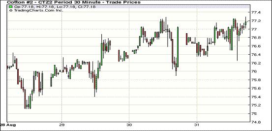 8月31日,紐約期棉受投機(jī)買盤支持連續(xù)第三個(gè)交易日上揚(yáng),近期10月合約收于76.48美分/磅,漲33點(diǎn);主力12月合約77.26美分/磅,漲32點(diǎn)。近期10月合約8月份整體上漲8.35%,主力12月合約整體上漲8.29%。ICE市場(chǎng)將于9月3日(下周一)休市一天,4日恢復(fù)交易。當(dāng)日買賣雙方交戰(zhàn)膠著,市場(chǎng)走勢(shì)變動(dòng)頻繁,但整體震蕩區(qū)間不大。31日市場(chǎng)平開后弱勢(shì)下行,盤中交易區(qū)間波動(dòng),交易后期,伯南克演講未明確暗示近期將推QE3,但給與QE這一政策高度評(píng)價(jià),投機(jī)買盤促市場(chǎng)最終收漲。