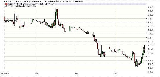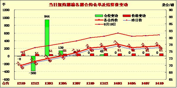 9月27日西班牙宣布了嚴(yán)格的新緊縮措施,市場圍繞西班牙申請救助的預(yù)期升溫,這對股市及多數(shù)商品市場形成提振,紐約期棉結(jié)束五連跌局面中幅反彈,近期10月合約結(jié)算價(jià)70.03美分/磅,漲51點(diǎn);主力12月合約結(jié)算價(jià)71.53美分/磅,漲51點(diǎn);其他遠(yuǎn)期合約漲幅51-71點(diǎn)不等。當(dāng)日主力12月合約小幅高開,早盤在外部商品市場走低拖累下震蕩下行,跌至71美分/磅處獲得支持;午盤后在70.80美分/磅上下震蕩,尾盤時(shí)在美元走低支持下震蕩上揚(yáng)并收漲。近期10月合約于本周一(24日)今日第一交割通知日,目前尚有未平倉合約29張。因?yàn)槲靼嘌拦嫉念A(yù)算草案令市場對歐債危機(jī)的擔(dān)憂有所緩解,且中國著手向銀行系統(tǒng)注入了流動(dòng)性,這對股市構(gòu)成提振,美股創(chuàng)兩周以后最大漲幅;金價(jià)觸及六個(gè)郭躍以來最高水平。目前棉花基本面仍然疲弱,反彈局面難言樂觀。