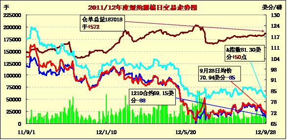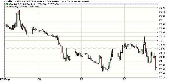 9月28日,雖然外部谷物及原油期貨走高,但紐約期棉在基本面疲弱及美元走強的打壓下掉頭收低,近期10月合約結算價69.15美分/磅,跌88點;主力12月合約結算價70.65美分/磅,跌88點;其他遠期合約跌幅67-81點不等。當日主力合約小幅低開后在71.6-71.8美分/磅之間窄幅運行,外部商品市場強勁促期棉短暫上揚,然基本面疲弱及投機賣盤入市打壓市場回落,該合約跌破關鍵支撐位71.05美分/磅,當日最低至70.58美分/磅,盤終收于8月1日以來最低點。自9月19日以來的7個交易日中,期棉有六個交易日收低,主力合約累計跌576點。技術面上,期棉仍處于下行通道,主力合約本周跌破關鍵支撐位,預計下周仍將繼續(xù)走弱,關注下一支撐位68.86美分/磅。
