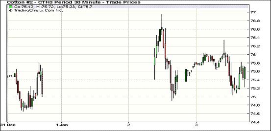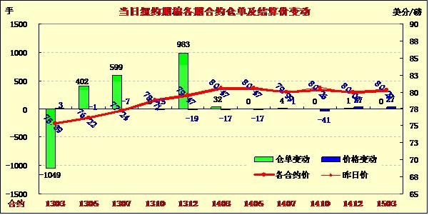 1月3日,因市場(chǎng)擔(dān)憂美聯(lián)儲(chǔ)退出經(jīng)濟(jì)刺激政策促使美元走高,美股及多數(shù)商品市場(chǎng)走低,紐約期棉未能延續(xù)過(guò)去兩日的漲勢(shì),多數(shù)合約收跌。主力1303月合約結(jié)算價(jià)75.39美分/磅,漲3點(diǎn);1305月合約結(jié)算價(jià)76.22美分/磅,跌1點(diǎn)。當(dāng)日主力合約上半場(chǎng)圍繞75.8美分/磅之間震蕩,午盤(pán)前后達(dá)當(dāng)日最高點(diǎn)76.34美分/磅。后投資者重新評(píng)估美國(guó)達(dá)成的預(yù)算協(xié)議,擔(dān)憂美聯(lián)儲(chǔ)退出刺激政策打壓期貨市場(chǎng)走低,該合約下行至當(dāng)日最低點(diǎn)75.04美分/磅;尾盤(pán)時(shí)分反彈回補(bǔ)部分跌幅,盤(pán)終微幅收跌。當(dāng)日外部谷物及原油市場(chǎng)也普遍走低。分析指出,因美國(guó)聯(lián)邦儲(chǔ)備委員會(huì)暗示可能會(huì)于今年停止債券購(gòu)買計(jì)劃,此消息對(duì)股市及商品市場(chǎng)形成打壓,同時(shí)投資者還對(duì)華盛頓或?qū)⒃谔岣呙绹?guó)債務(wù)上限以及通過(guò)相關(guān)預(yù)算的問(wèn)題上出現(xiàn)更多角力感到不安。目前市場(chǎng)關(guān)注焦點(diǎn)轉(zhuǎn)向美國(guó)政府將于周五公布的非農(nóng)就業(yè)數(shù)據(jù)。