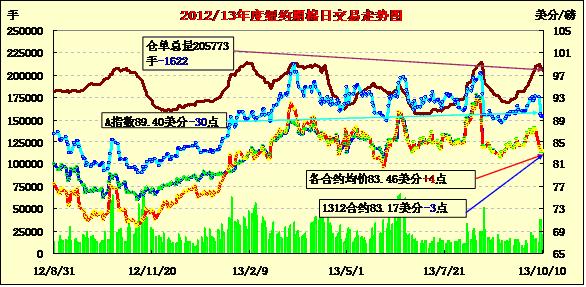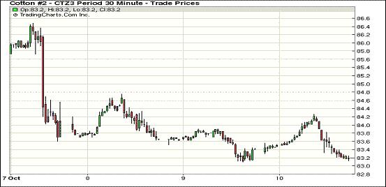 10月10日,因美國(guó)政府停擺、各項(xiàng)重要數(shù)據(jù)暫停公布,紐約期棉缺乏方向指引呈弱勢(shì)震蕩格局,主力12月合約結(jié)算價(jià)83.17美分/磅,跌3點(diǎn);遠(yuǎn)期3月合約收于84.01美分/磅,漲3點(diǎn);其他遠(yuǎn)期合約微幅收漲。當(dāng)日市場(chǎng)微幅高開(kāi),早盤在買盤支持下一路上行,主力合約至當(dāng)日最高點(diǎn)84.26美分/磅,此時(shí)買盤獲利平倉(cāng)致市場(chǎng)回落,該合約尾盤時(shí)分至當(dāng)日最低點(diǎn)83.13美分,震蕩幅度113點(diǎn),盤終收于9月5日以來(lái)最低值,為連續(xù)第五個(gè)交易日收跌。分析指出,美國(guó)政府停運(yùn)造成美棉出口周報(bào)、苗情報(bào)告、檢驗(yàn)報(bào)告及供需預(yù)測(cè)報(bào)告等都暫停公布,市場(chǎng)缺乏消息刺激弱勢(shì)運(yùn)行。