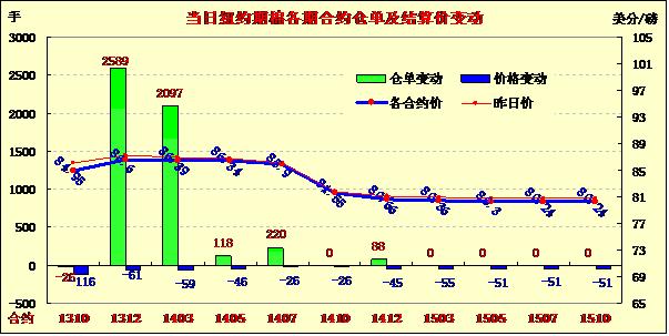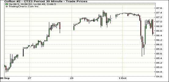 10月1日,在美國政府停運引發(fā)投資者擔(dān)憂及風(fēng)暴天氣或?qū)е旅绹轮菝藁ㄊ軗p并推遲上市等因素影響下,紐約期棉結(jié)束五連漲普遍回落,主力12月合約結(jié)算價86.60美分/磅,跌61點;遠期3月合約收于86.39美分/磅,跌59點。當(dāng)日市場平穩(wěn)開盤,主力12月合約早盤短暫上行至當(dāng)日最高點87.38美分/磅,后因美政府停運引發(fā)投資者擔(dān)憂,同時風(fēng)暴天氣繼續(xù)存在,市場受打壓回落,盤終該合約結(jié)束五連漲中幅收跌,跌幅大于外部商品市場。市場成交量較前一日增加。分析指出,交易商擔(dān)憂由于聯(lián)邦政府無限期停運,將導(dǎo)致一些關(guān)鍵的農(nóng)業(yè)數(shù)據(jù)無法發(fā)布。同時,目前美國棉區(qū)風(fēng)暴天氣可能損及美國最大棉花種植州德州的棉花作物,供應(yīng)可能吃緊。