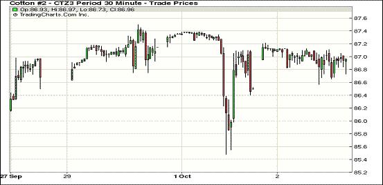 10月2日,紐約期棉在美元走軟及外部商品市場(chǎng)走高帶動(dòng)下反彈,主力12月合約結(jié)算價(jià)86.95美分/磅,漲35點(diǎn);遠(yuǎn)期3月合約收于86.79美分/磅,漲40點(diǎn)。市場(chǎng)當(dāng)日整體走勢(shì)平穩(wěn),主力12月合約早盤(pán)在87.1美分/磅短暫運(yùn)行,后震蕩區(qū)間下移至86.9美分一線并持續(xù)至盤(pán)終。市場(chǎng)成交量約為前一日的一半左右。分析指出,因美國(guó)聯(lián)邦政府停運(yùn),美國(guó)棉花現(xiàn)貨市場(chǎng)交易情況已連續(xù)兩日未發(fā)布,原定于今晚發(fā)布的美棉出口周報(bào)也將暫停發(fā)布。如果美國(guó)政府停運(yùn)長(zhǎng)時(shí)間持續(xù),棉花質(zhì)量檢查將中斷,加上關(guān)鍵統(tǒng)計(jì)報(bào)告推遲發(fā)布,將可能推遲美國(guó)棉花出口。