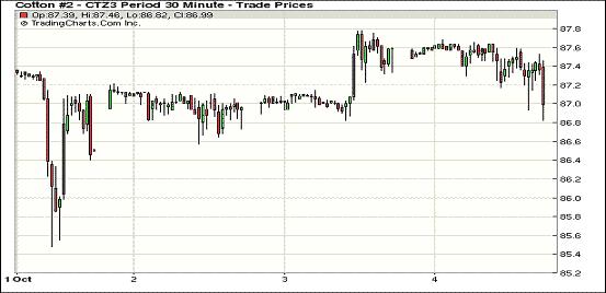 10月4日,因美國政府部分停運(yùn)的不確定性打壓價(jià)格,紐約期棉除近期合約外普遍收低,10月合約結(jié)算價(jià)85.83美分/磅,漲4點(diǎn);主力12月合約結(jié)算價(jià)87.18美分/磅,跌26點(diǎn);遠(yuǎn)期3月合約收于87.13美分/磅,跌24點(diǎn)。當(dāng)日市場平穩(wěn)開盤,早盤時(shí)分在熱帶風(fēng)暴逼近棉花種植帶將對棉花造成損害的預(yù)期下,主力12月合約至當(dāng)日最高點(diǎn)87.68美分/磅,后美國政府停運(yùn)的不確定性蓋過了天氣利好因素,期棉承壓下跌,盤終該合約小幅收跌,其他遠(yuǎn)期合約跌幅5-26點(diǎn)不等。分析指出,期棉市場繼續(xù)在沒有關(guān)鍵政府?dāng)?shù)據(jù)和服務(wù)的情況下運(yùn)作,其中包括USDA發(fā)布的美棉出口銷售報(bào)告,這是首個(gè)受停運(yùn)影響推遲公布的數(shù)據(jù)。