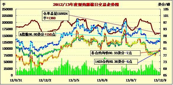 11月9日,紐約期棉除5月合約微漲外,其余合約均小幅下跌。主力3月合約收于80.36美分/磅,跌5點(diǎn);5月合約結(jié)算價(jià)80.69美分/磅,漲3點(diǎn);1407月合約收于80.41美分/磅,跌12點(diǎn)。當(dāng)日期棉開盤后窄幅震蕩,午盤過后買家入場(chǎng)拉動(dòng)期棉上漲,主力3月合約震蕩區(qū)間65點(diǎn),最高80.75美分/磅,市場(chǎng)成交額仍有限。USDA供需報(bào)告今日發(fā)布;上周五反彈性大漲將期棉帶入超賣境地,短期期棉上漲壓力增大。