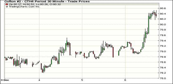 11月6日,紐約期棉各合約普遍上漲,近期合約漲幅均超百點(diǎn);主力12月合約結(jié)算價79.38美分/磅,漲156點(diǎn);1403月合約收于80.41美分/磅,漲156點(diǎn);1405月合約收于80.66美分/磅,漲142點(diǎn)。本周最后一個交易日,紐約期棉合約均大幅上漲,主力3月合約站上80美分,上漲156點(diǎn),為一個月來新高;受美國國內(nèi)就業(yè)率有利數(shù)據(jù)帶動,美股大漲,對期棉上漲形成支持。本周市場雖整體收漲,但基本面消息多為利空,預(yù)計圣誕節(jié)過后市場需求將減弱。