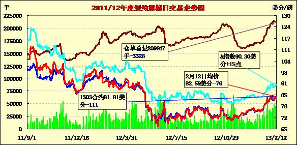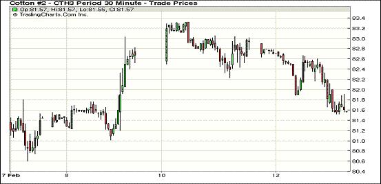 2月12日,紐約期棉市場未能繼續(xù)受美國國家棉花總會面積意向報告利多影響,結(jié)束漲勢以全面下跌收盤,近期3月合約結(jié)算價81.81美分/磅,跌111點,12月合約83.50美分,跌34點;2月22日為3月合約第一個交割通知日,市場轉(zhuǎn)倉活躍,成交量維持高位。當日3月合約整日交易重心向下。該合約穩(wěn)定開盤后跳空,在82美分獲得支撐反彈向上,但日均線受壓于82.5美分,在此高位盤整缺乏買盤跟進后再度下跌,交易后期在82美分以下窄幅波動,最終收跌百余點。分析師指出,前兩個交易日市場上漲主要受NCC報告支持,但回歸基本面,全球棉花庫存仍居高難下,對期棉形成打壓。
