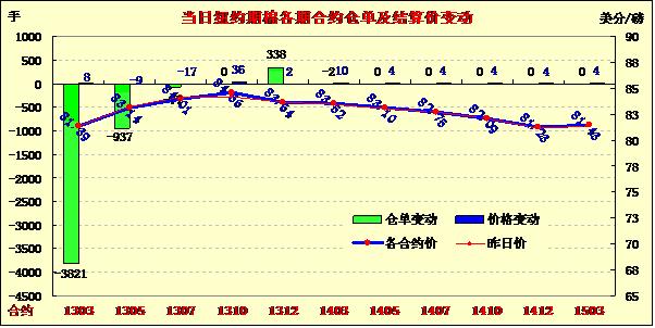 2月22日,紐約期棉多漲少跌,近期1303月合約81.39美分/磅,漲8點;主力1305月合約結(jié)算價83.14美分/磅,跌9點;1307月合約收于84.01美分/磅,跌17點;其他遠期合約微幅或小幅收漲。當(dāng)日市場早盤運行平穩(wěn),主力合約主要在83.2-83.6美分震蕩,后美棉出口裝運數(shù)據(jù)強勁促市場走高,該合約至當(dāng)日最高點84.16美分/磅,后外圍商品走低及賣盤涌入打壓市場回落,該合約盤中微幅收低。本周3月合約累計漲7點;5月合約累計跌5點;7月合約累計跌4點;12月合約累計漲39點。