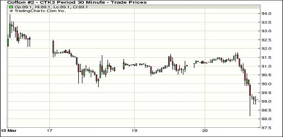賣盤打壓紐約期棉近期合約大幅下挫(3-20)