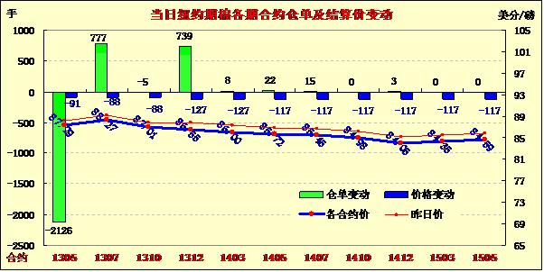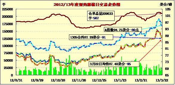3月21日美棉出口減少及歐債危機(jī)擔(dān)憂對(duì)市場(chǎng)形成進(jìn)一步打壓,紐約期棉市場(chǎng)繼續(xù)走低,近期5月合約結(jié)算價(jià)88.20美分/磅,跌90點(diǎn),12月合約87.82美分,跌16點(diǎn)。當(dāng)日交易整體呈現(xiàn)下跌趨勢(shì),5月合約在89美分處開盤后上半場(chǎng)交易在此水平線上微幅波動(dòng),交易中期下跌百余點(diǎn)在88美分獲得支撐后低位徘徊,最終收于近低點(diǎn)。盡管昨日公布的美國經(jīng)濟(jì)數(shù)據(jù)好于預(yù)期,但投資者更關(guān)注救援塞浦路斯局勢(shì)進(jìn)展;美棉出口周報(bào)顯示上周美棉出口減少,對(duì)市場(chǎng)形成利空。
