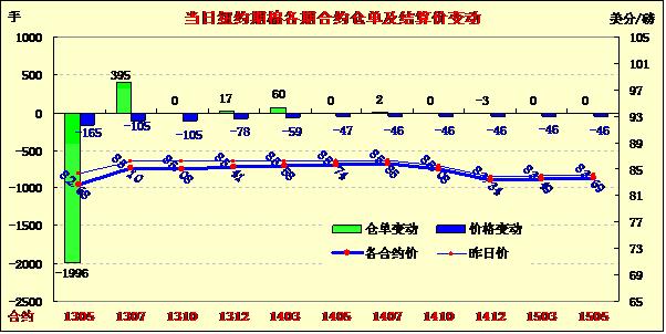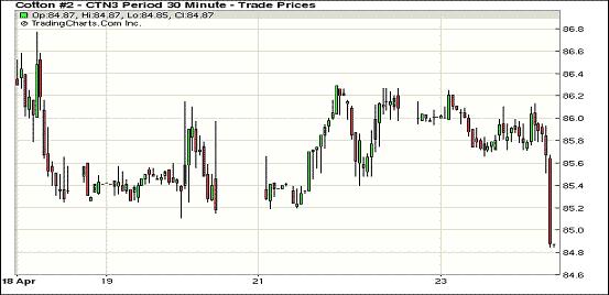 4月23日,中國制造業(yè)數(shù)據(jù)疲弱令市場產(chǎn)生對全球經(jīng)濟放緩的擔心,同時貿(mào)易商多頭了解頭寸也對期棉形成壓力,ICE期棉結(jié)束短暫反彈回歸跌勢,近期5月合約結(jié)算價82.68美分/磅,跌165點;主力7月合約結(jié)算價85.10美分/磅,跌105點;12月合約結(jié)算價85.41美分/磅,跌78點。其他遠期合約普遍中幅收跌。當日市場平穩(wěn)開盤,主力7月合約大部分時間在85.8美分/磅一線波動,尾盤時遭遇賣盤打壓迅速滑落,盤終收跌百余點。近月5月合約跌幅達2%,從3月15日觸及的93.93美分的高位累計下跌逾12%。近期5月合約將于24日進入第一交割通知日,目前尚有未平倉合約4129張。中國制造業(yè)數(shù)據(jù)弱于預期,此前公布的一季度國內(nèi)生產(chǎn)總值(GDP)增速不僅低于去年同期,也低于2012年四季度,這引發(fā)市場對其全球經(jīng)濟的擔憂。