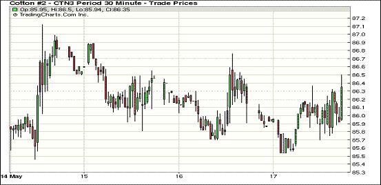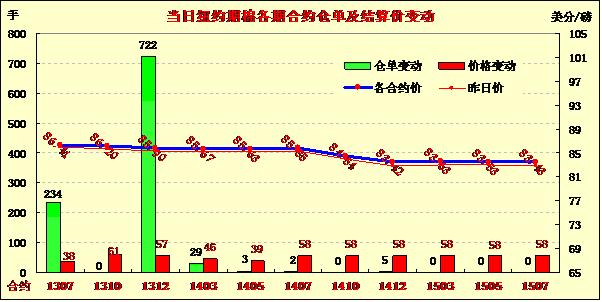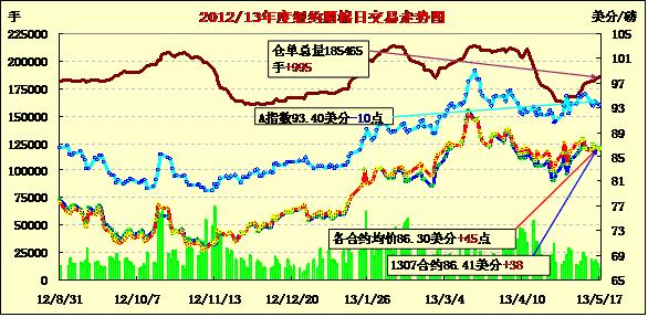 5月17日,市場基本面及消息面平平,紐約期棉在外部商品及金融市場走高帶動(dòng)下中幅反彈,主力7月合約結(jié)算價(jià)86.41美分/磅,漲38點(diǎn);遠(yuǎn)期12月合約結(jié)算價(jià)85.90美分/磅,漲57點(diǎn)。市場成交量較前一日有所增加,但仍處于地位。當(dāng)日期棉平穩(wěn)開盤,主力早盤在85.6美分一線波動(dòng),后在外部市場走高提振下上揚(yáng),后半場基本圍繞86美分波動(dòng),盤終中幅收漲。當(dāng)周期棉整體變動(dòng)不大,7月合約較前一周跌7點(diǎn),12月合約漲8點(diǎn)。