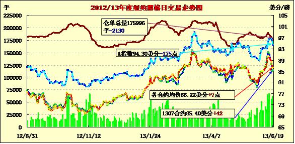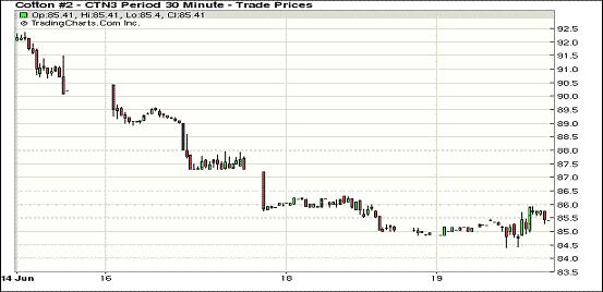 6月19日,受市場擔(dān)憂中國經(jīng)濟(jì)增長放緩及美國最大產(chǎn)棉區(qū)出現(xiàn)利好降雨打壓,紐約期棉除近期合約外均以陰跌收盤,7月合約結(jié)算價85.40美分/磅,漲42點;主力12月合約結(jié)算價86.60美分/磅,跌72點。當(dāng)日市場微幅高開,7月合約尚有兩個交易日進(jìn)入第一交割通知日,當(dāng)日整體運(yùn)行較為平穩(wěn),震蕩幅度153點,盤終小幅收漲。美國最大棉花種植區(qū)德干旱持續(xù),近期降雨緩解這一憂慮,打壓12月合約連續(xù)第三日下跌,為5月底來最長跌勢。分析指出,匯豐銀行將中國今明兩年的經(jīng)濟(jì)增長預(yù)期從8.2%和8.4%下調(diào)至7.4%,中國是全球最大的棉花消費(fèi)國和進(jìn)口國,其經(jīng)濟(jì)增長預(yù)期下降對市場形成壓力。