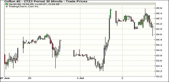 7月2日,紐約期棉未能延續(xù)前一日的強(qiáng)勢(shì)整體回落,近期7月合約結(jié)算價(jià)83.22美分/磅,跌107點(diǎn);主力12月合約結(jié)算價(jià)84.72美分/磅,跌82點(diǎn);其他遠(yuǎn)期合約普遍小幅收跌。當(dāng)日市場(chǎng)小幅低開(kāi),主力12月合約早盤圍繞85美分/磅左右震蕩,午盤后在買盤支持下上揚(yáng)至當(dāng)日最高點(diǎn)85.58美分/磅(+ 4點(diǎn)),后買盤獲利平倉(cāng)打壓市場(chǎng)回落,該合約以陰跌收盤。當(dāng)日市場(chǎng)交易較為清淡,因7月4日為美國(guó)獨(dú)立日,ICE期市將休市一天,節(jié)日氣氛已經(jīng)開(kāi)始蔓延,預(yù)計(jì)本周交易均以清淡為主。