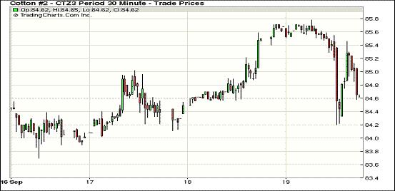 8月19日,受技術(shù)性賣盤打壓,紐約期棉各合約普遍回落,近期10月合約收于85.34美分/磅,跌39點(diǎn);主力12月合約結(jié)算價(jià)84.72美分/磅,跌82點(diǎn);1403月合約收于84.46美分/磅,跌68點(diǎn)。當(dāng)日期棉開盤延續(xù)前一日漲勢(shì),主力12月合約突破近期震蕩區(qū)間,觸及85.78美分/磅,為8月21日以來最高點(diǎn),此時(shí)技術(shù)賣盤入市打壓期棉市場(chǎng)下滑,該合約當(dāng)日最低至84.20美分/磅,盤終收跌回吐前一日漲幅。12/3月合約價(jià)差縮小至26點(diǎn),前一日為40點(diǎn)。
