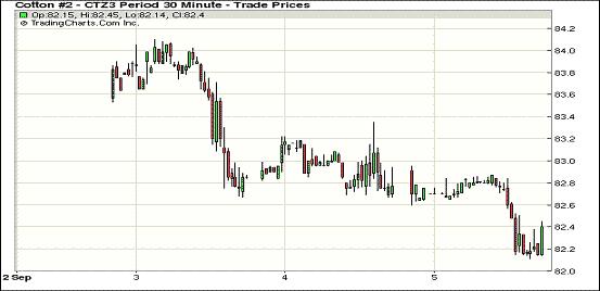 9月5日,紐約期棉遠(yuǎn)近合約持續(xù)下跌;近期10月合約結(jié)算價(jià)82.40美分/磅,跌43點(diǎn);主力12月合約結(jié)算價(jià)82.30美分/磅,跌45點(diǎn);遠(yuǎn)期3月合約收于81.89美分/磅,跌43點(diǎn)。