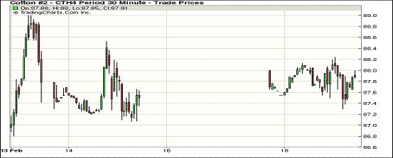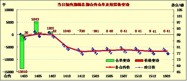 2月18日,受美元走低、外部商品市場普遍上揚支持,紐約期棉全面收高,近期1403月合約結(jié)算價87.91美分/磅,漲36點;主力1405月合約結(jié)算價89.48美分/磅,漲44點;1407月合約結(jié)算價89.00美分/磅,漲42點。當(dāng)日期棉小幅高開,主力5月合約當(dāng)日大部分時間在89美分/磅之上運行,接近尾盤時在賣盤打壓下短暫跌破89美分,當(dāng)日最低至88.67美分/磅,震蕩區(qū)間96點;盤終中幅收漲。上周價差及基金移倉交易活躍,成交量在4萬手以上,本周交易量下降。
