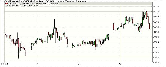 2月6日,美棉簽約及出口強勁使市場擔心其可供出口資源繼續(xù)減少,紐約期棉受支持連續(xù)第三個交易日收漲,1403月合約結算價86.31美分/磅,漲79點;1405月合約結算價86.92美分/磅,漲84點;1407月合約結算價86.47美分/磅,漲83點。期棉當日小幅高開,主力3月合約在美棉出口周報公布后反彈上揚,交易后半段至當日最高點86.69美分(+117點),尾盤時略有回落回吐部分漲幅,盤終收于近一周最高值。近期價差交易活躍,預計新一輪指數(shù)基金移倉將從本周五開始。據(jù)USDA,1.24-1.30一周美國凈簽約出口本年度陸地棉40778噸(較前一周減63%,較近四周平均值減43%),裝運81329噸(較前一周增18%,較近四周平均值增48%),裝運速度加快。