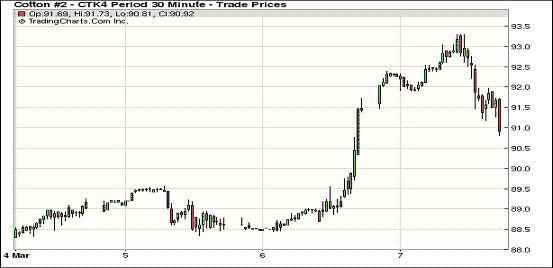 紐約期棉放量增倉止?jié)q回落(03-07)