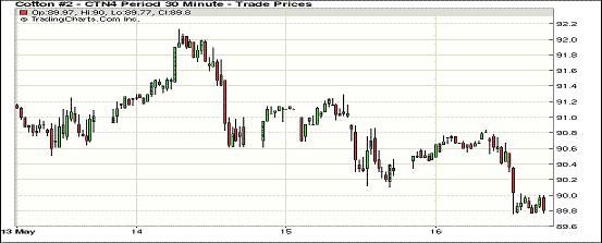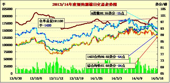 因處于干旱的德州棉區(qū)將出現(xiàn)降雨的預(yù)期,16日紐約期棉市場繼續(xù)下跌,近期7月合約跌破90美分支撐位,結(jié)算價89.82美分/磅,跌54點,12月合約82.34美分,跌28點。7/12月合約價差748點,較上周五縮小117點。當(dāng)日7月合約上半場交易平穩(wěn),市場多在90.5美分附近波動,交易后期,因德州降雨預(yù)期打壓,該合約拉出陰線洞穿90美分支撐位,最終收于近低點。據(jù)美國氣象部門對未來十天的天氣預(yù)報,預(yù)計德州在下周某天將有70%的降雨可能性,其他有兩天的可能性為30%。