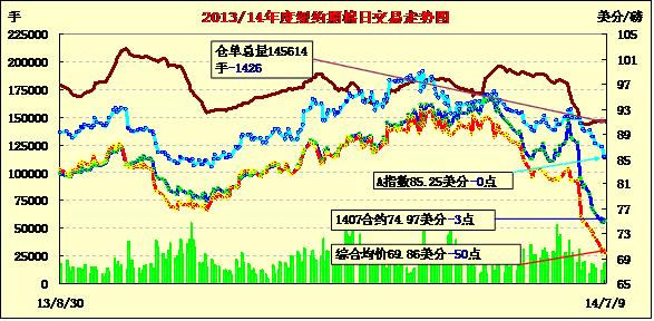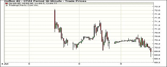 紐約期棉持續(xù)下跌主力破70美分(07-09)