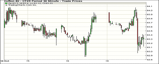 周一紐約期棉走低回落;1512月合約結(jié)算價(jià)63.24美分/磅,跌61點(diǎn);1603月合約收于63.12美分/磅,跌58點(diǎn)。當(dāng)日主力合約早間交易小幅震蕩調(diào)整并略走高,下半場(chǎng)交易跳水下跌,最低時(shí)跌破63美分/磅,最終跌幅0.96%。中國(guó)第三季度GDP創(chuàng)2009年二季度以來(lái)的最低增速,工業(yè)增加值及固定資產(chǎn)投資增速也繼續(xù)下滑,中國(guó)經(jīng)濟(jì)數(shù)據(jù)令人失望和憂慮,美元連續(xù)走高,這令大宗商品普遍表現(xiàn)為下跌,紐約棉花期價(jià)也跟隨下行。