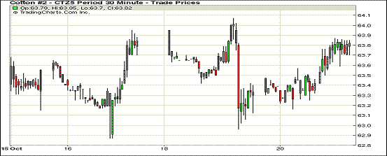 10月20日,德州平原普降大雨,印度CCI收購(gòu)即將開(kāi)始,紐約期棉價(jià)格小幅上漲;1512月合約結(jié)算價(jià)63.78美分/磅,漲54點(diǎn),1603月合約63.66美分,漲54點(diǎn)。當(dāng)日12月合約開(kāi)盤后走低,最低在63.16美分/磅,盤中上揚(yáng)并收于當(dāng)日高位。全天處于小幅整理走勢(shì)。目前美棉采摘進(jìn)度已達(dá)30%以上,產(chǎn)量和質(zhì)量下降幅度將成為市場(chǎng)關(guān)注焦點(diǎn),同時(shí)新年度印度政府收儲(chǔ)也將對(duì)棉價(jià)形成長(zhǎng)期支撐,在此情況下,雖然中國(guó)消費(fèi)萎縮對(duì)國(guó)際棉花需求放緩,但對(duì)國(guó)際棉價(jià)的利空影響有限。