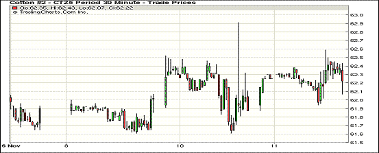 11月12日,1512月合約結(jié)算價(jià)62.18美分/磅,漲25點(diǎn);1603月合約收于62.31美分/磅,漲32點(diǎn)。當(dāng)日主力3月合約早間交易呈上漲趨勢(shì)但未能持續(xù),并很快跌至61.92美分/磅,后在買盤支撐下上漲,最終收于當(dāng)日震蕩區(qū)間高位。本周美棉出口周報(bào)推遲更新,據(jù)FAS稱,目前美國(guó)政府正在設(shè)法增加其他國(guó)家市場(chǎng)的美棉簽約以彌補(bǔ)中國(guó)進(jìn)口的減少,此外,有預(yù)測(cè)調(diào)增德州新花產(chǎn)量。