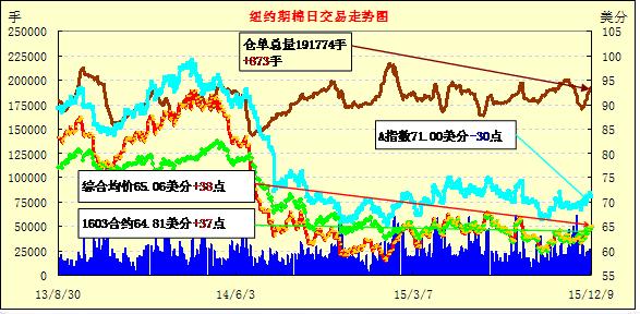 本月USDA報(bào)告繼續(xù)下調(diào)世界棉花產(chǎn)量,紐約期棉上漲;1603月合約結(jié)算價(jià)64.81美分/磅,漲37點(diǎn);1605月合約收于65.56美分/磅,漲35點(diǎn)。當(dāng)日紐約期棉早間交易略顯平穩(wěn),午后在買盤的刺激下上漲,最高價(jià)創(chuàng)8月24日以來最高,后USDA月度報(bào)告發(fā)布,期棉回落。9日發(fā)布的USDA月度報(bào)告整體偏利多,年度產(chǎn)量和期末庫存均有下調(diào),消費(fèi)量小幅下調(diào),主要出口國美國產(chǎn)量下調(diào),出口減少。
