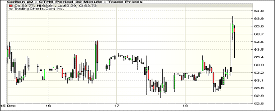 12月18日美元回落,紐約期棉小幅反彈;1603月合約結(jié)算價63.69美分/磅,漲70點,1605月合約64.46美分,漲67點。當(dāng)日結(jié)束連續(xù)跌勢小幅收高,當(dāng)日主力合約兩次沖高,收盤前重回漲幅區(qū)域。周四發(fā)布的美棉出口雖有回升,但市場銷售依然疲軟并明顯落后于往年,基本面格局利空,加上美聯(lián)儲加息政策,棉價反彈有限。