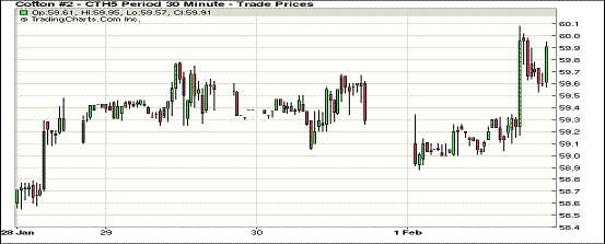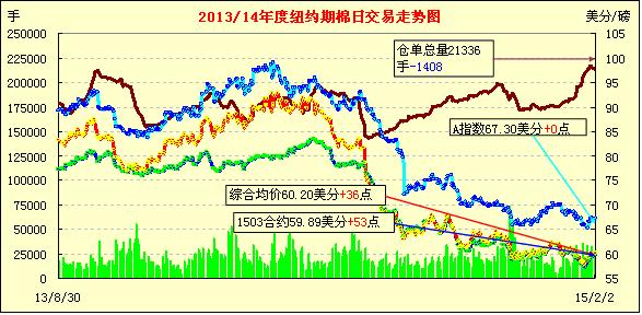2月2月首個(gè)交易日,受外部市場(chǎng)走強(qiáng)和投資者逢低買入支持,紐約期棉再度反彈上漲;主力3月合約收于59.36美分/磅,跌21點(diǎn);1505月合約60.02美分/磅,跌33點(diǎn)。當(dāng)日期棉開盤后繼續(xù)延續(xù)近期反彈走勢(shì),短暫突破60美分/磅,為1月中旬以來首次破該點(diǎn)位,1512合約小幅收跌;外部商品市場(chǎng)小麥和油籽期貨上漲。雖然近期棉價(jià)持續(xù)反彈走高,但全球供應(yīng)過?,F(xiàn)狀仍存,國(guó)際棉價(jià)仍無足夠上漲支撐。