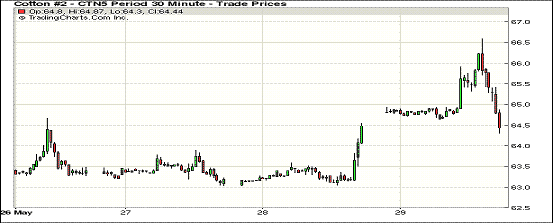 5月29日紐約期棉沖高回落,但主力合約保持上漲;1507月合約結(jié)算價(jià)64.35美分/磅,漲2點(diǎn);1512月合約收于64.64美分/磅,跌42點(diǎn)。最新美棉出口支撐紐約期棉在繼續(xù)上漲,主力7月合約最高至66.59美分/磅,尾盤(pán)遭受多單獲利平倉(cāng)賣(mài)盤(pán)打壓而回吐漲幅。漲幅0.03%。7/12月合約價(jià)差29點(diǎn)。周五公布的美棉出口報(bào)告顯示5月15-21日美棉出口激增,為117500包,較上周增98%;裝運(yùn)339200包,基本同上周持平。