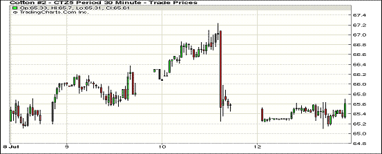 7月13日紐期止跌企穩(wěn),主力合約在65美分一線獲得支撐;1512月合約結(jié)算價65.52美分/磅不變;1603月合約收于65.56美分/磅,漲1點。本周第一個交易日期棉全天承壓,市場消息有限,交易商關(guān)注美棉苗情報告。周末兩天棉區(qū)天氣良好。