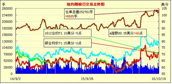 周三紐約期棉連續(xù)第二日微幅調整,合約價漲跌互現(xiàn);1612合約收于71.10美分/磅,跌5點;1703合約收于71.45美分/磅,漲1點。當日主力合約開盤后短暫上漲,最高至71.27美分/磅,之后回落并保持在跌幅區(qū)間,收盤前在低位持穩(wěn)。當日震蕩區(qū)間較前一交易日擴大。目前北半球棉區(qū)在采摘期,新花上市集中給棉價帶來壓力,美棉和澳棉增產(chǎn)使全球供應寬松。