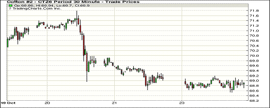 24日,紐約期棉市場連續(xù)第五個(gè)交易日收跌,近期12月合約結(jié)算價(jià)68.77美分/磅,跌30點(diǎn),1703月合約69.22美分,跌25點(diǎn)。當(dāng)日12月合約早盤下跌,盤中試圖站穩(wěn)于69美分無果,終以小幅下跌收盤。分析指出,投機(jī)多頭逐步將持倉轉(zhuǎn)移至3月合約,近月持續(xù)弱態(tài)。美元持續(xù)走高,對(duì)紐約期棉亦有壓力。