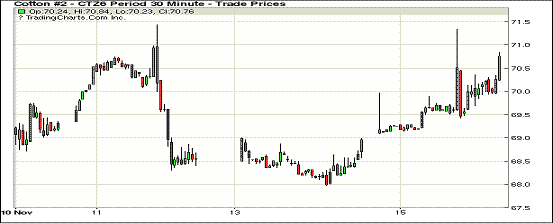 ICAC最新預(yù)測調(diào)增全球進口貿(mào)易量,紐約期棉連續(xù)第二個交易日上漲;1612合約收于70.69美分/磅,漲179點;1703合約收于70.48美分/磅,漲117點。當(dāng)日3月合約在收盤前沖高并最終收于震蕩區(qū)間高位,連續(xù)兩個交易日收漲,累計漲145點。最新ICAC預(yù)測上調(diào)全球進口貿(mào)易量至748萬噸,較上年度增4%,10月越南棉花進口量增加,同月中國進口量減少。