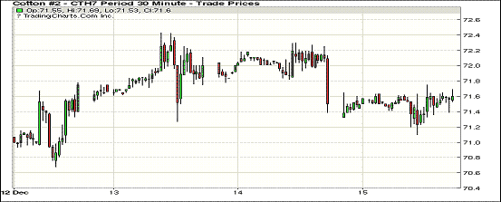 最新美棉簽約量依然保持強(qiáng)勁,周四紐約期棉繼續(xù)再次上漲;1703合約收于71.67美分/磅,漲20點(diǎn);1705合約收于71.92美分/磅,漲28點(diǎn)。當(dāng)日主力合約先跌后漲并繼續(xù)保持近期的震蕩走勢,但交投區(qū)間較前一日縮小。本次美聯(lián)儲加息,預(yù)示經(jīng)濟(jì)有所好轉(zhuǎn), 周四美元指數(shù)繼續(xù)上漲,商品指數(shù)下跌。最新公布的美棉銷售雖較前一周減少,但較近四周平均銷售量有所增加,棉價(jià)保持堅(jiān)挺。