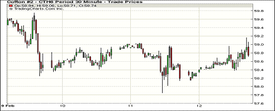 2月12日紐約期棉市場漲跌互現(xiàn),5月合約持倉量超越3月合約。1603月合約結(jié)算價58.90美分/磅,漲48點(diǎn);主力1605月合約收于58.64美分/磅,跌7點(diǎn)。當(dāng)日市場上半場交易相對清淡,主力5月合約盤中走高,但在挑戰(zhàn)59美分失敗后遭遇賣盤打壓從高位回落,最終以微幅下跌收盤。據(jù)路透社報道,土耳其在展開為期一年的調(diào)查后得出結(jié)論,美棉對土耳其形成傾銷,損害了土耳其國內(nèi)棉花生產(chǎn),美國方面則認(rèn)為美棉對土耳其出口未形成傾銷,雙方還將就此問題進(jìn)行進(jìn)一步溝通。