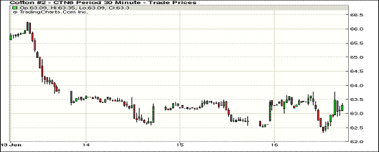 周四紐約期棉反彈,近月合約結(jié)束連續(xù)6天的跌勢(shì)再次上漲;1607月合約63.30美分/磅,漲70點(diǎn);1612月合約64.93美分/磅,漲131點(diǎn)。當(dāng)日早間期棉走勢(shì)平穩(wěn),USDA出口報(bào)告發(fā)布時(shí)賣(mài)盤(pán)增加,合約價(jià)走低后觸底反彈。6月3日至9日一周,美棉簽約下滑,本年度和下年度陸地棉簽約總和118700包,較前一周的247400減少,本年度陸地棉簽約量創(chuàng)近六周來(lái)最低。本年度陸地棉簽約總量達(dá)到USDA預(yù)測(cè)的103%。