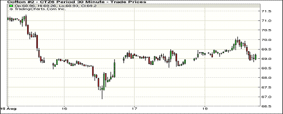 18日,紐約期棉市場繼續(xù)以小幅上漲收盤,12月合約結(jié)算價69.01美分/磅,漲20點,1703月合約69.64美分,漲34點。上周美棉出口較好,對市場形成支持。當(dāng)日市場整日交易重心略顯向上,12月合約穩(wěn)定開盤后盤中最高沖破70美分,至70.15美分(+134點),交易中后期圍繞69美分上下波動,最終收于69.01美分。分析師指出,經(jīng)過前面多日大跌,技術(shù)上市場超跌后反彈需求,近兩日連續(xù)穩(wěn)固就是最好的證明。值得注意的是,本周市場繼續(xù)維持較高的持倉量。據(jù)美國農(nóng)業(yè)部(USDA),8.5-11日一周美國凈簽約出口本年度陸地棉46493噸;裝運本年度陸地棉39871噸。凈簽約本年度皮馬棉4241噸,裝運皮馬棉1338噸。