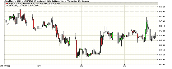 26日,紐約期棉市場(chǎng)漲跌不一,主力12月合約結(jié)算價(jià)68.03美分,跌1點(diǎn),1703月合約68.36美分,漲5點(diǎn)。美聯(lián)儲(chǔ)(FED)主席耶倫周五講話后金融市場(chǎng)波動(dòng)較大,期棉表現(xiàn)相對(duì)淡定。當(dāng)日市場(chǎng)早盤微幅上漲,12月合約最高68.77美分(+73點(diǎn)),交易后期跌至67美分中段水平,經(jīng)過(guò)小幅震蕩市場(chǎng)終以漲跌互現(xiàn)收盤。周五(8月26日)晚22點(diǎn),耶倫表示近幾個(gè)月加息的可能性增強(qiáng),但對(duì)美聯(lián)儲(chǔ)近期政策前景提及有限。眼下,下周五公布的8月非農(nóng)就業(yè)報(bào)告成為市場(chǎng)焦點(diǎn)所在。耶倫講話之后,金融市場(chǎng)瞬間掀起滔天巨浪,美元指數(shù)先揚(yáng)后抑,非美貨幣與金銀油也開(kāi)啟暴漲暴跌模式。